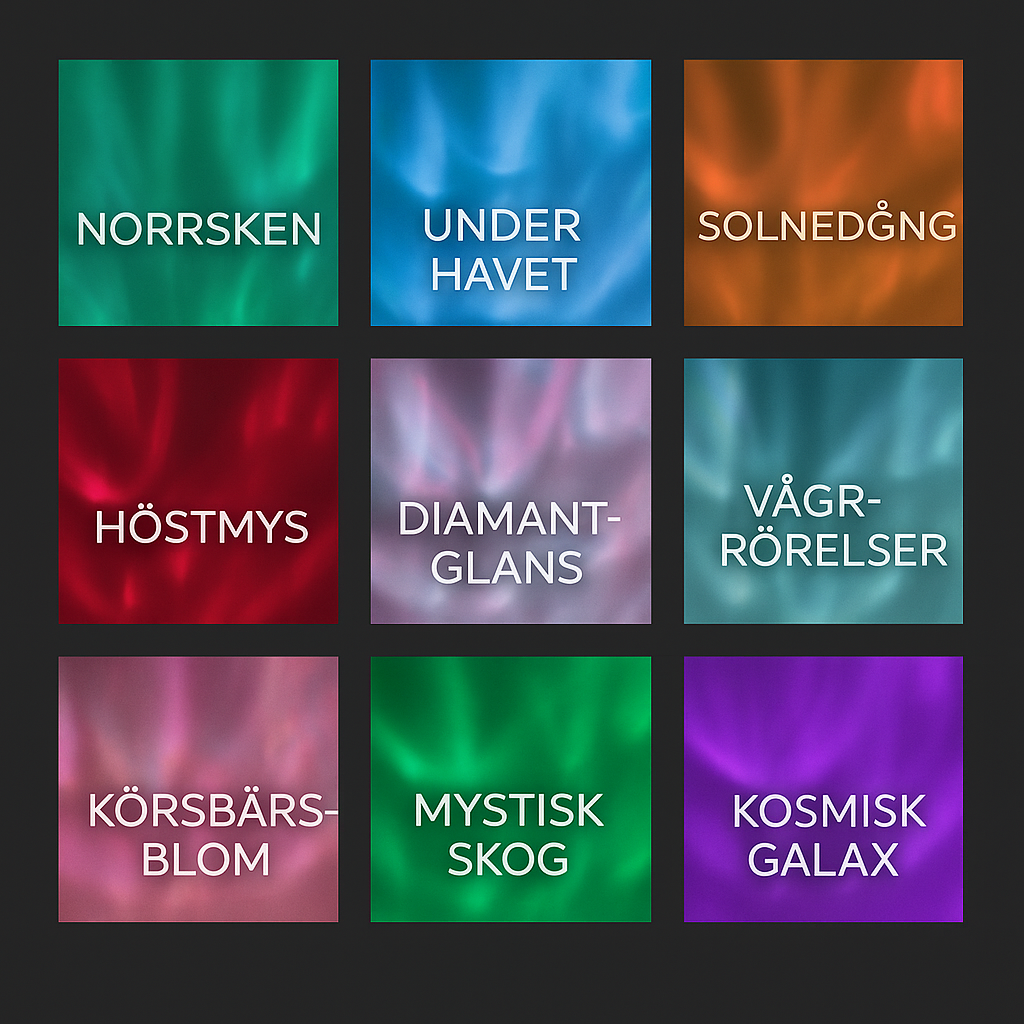 Norrskenslampan™ erbjuder en unik variation av färger – från havets lugna djup till norrskenets dansande ljus över himlen.